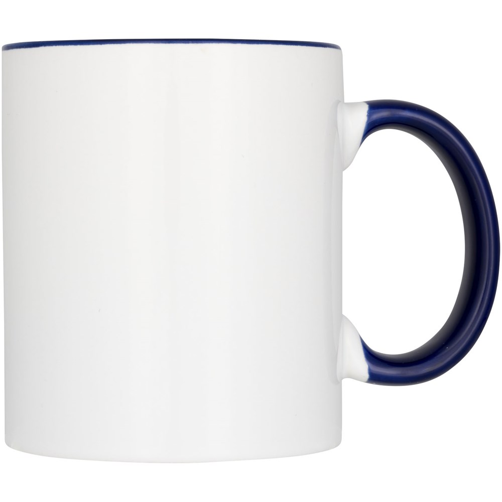 Dieser Keramikbecher in klassischem Design verfügt über eine spezielle Beschichtung für Sublimation. Der Becher hat eine farbige Innenseite mit Griff in passender Farbe. Spülmaschinenfest EN12875-1 konform (bei bis zu 125 Waschvorgängen) für alle Werbeanbringungsmethoden. Das Fassungsvermögen beträgt 330 ml. Präsentiert in einer weißen Pappschachtel.