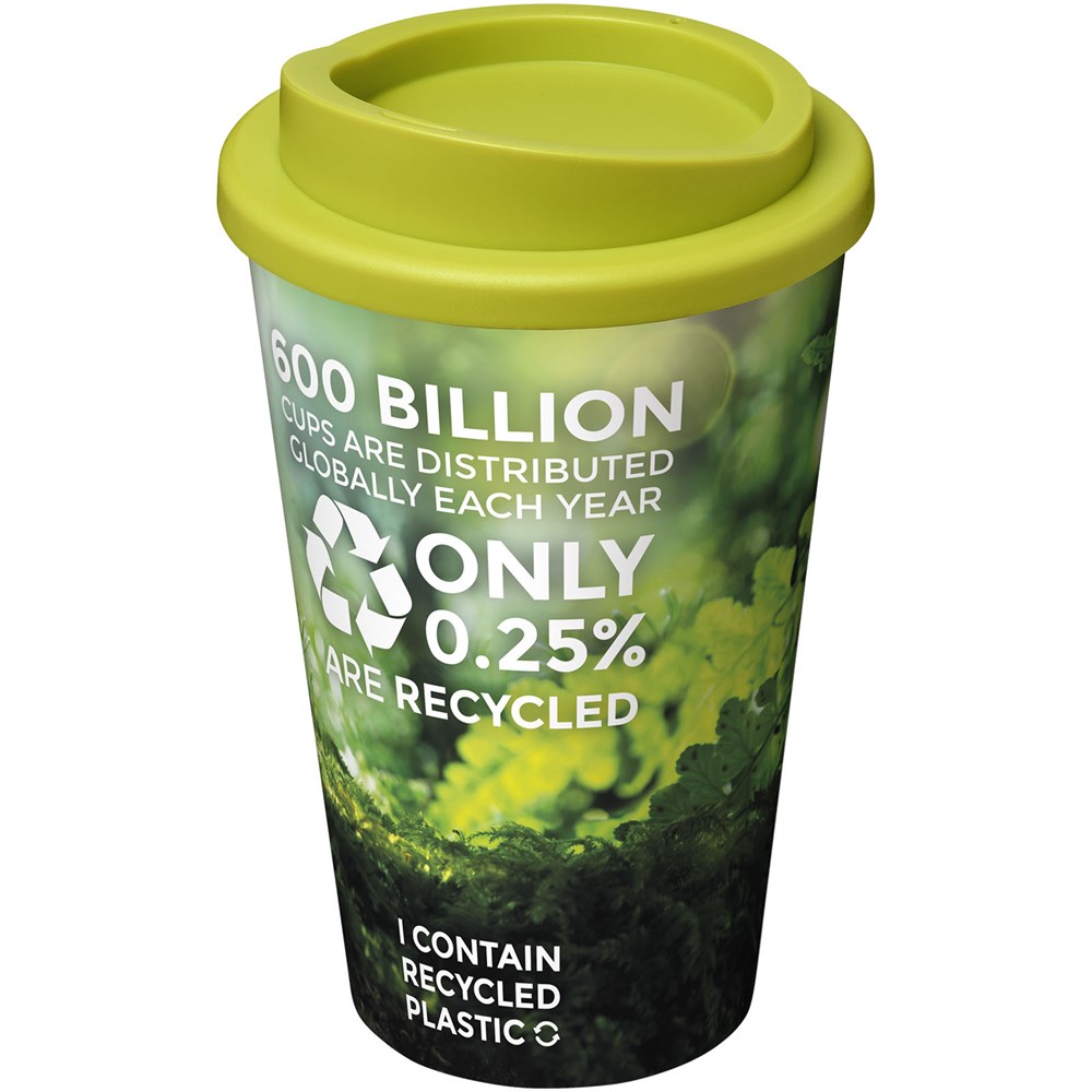 Doppelwandiger Isolierbecher mit Schraubdeckel. Die äußere Schicht des Bechers ist aus recyceltem Kunststoff hergestellt. Der Becher verfügt über ein vollfarbiges, umlaufendes Design, das an das Produkt angepasst ist – für Strapazierfähigkeit und Haltbarkeit. EN12875-1 konform; spülmaschinen- und mikrowellenfest. Das Fassungsvermögen beträgt 350 ml. Mischen und kombinieren Sie Farben, um Ihren perfekten Becher zu kreieren. Hergestellt in Großbritannien. Mindestabnahmemenge 50 Stück. Verpackt in einem kompostierbaren Beutel. BPA-frei und spülmaschinenfest.