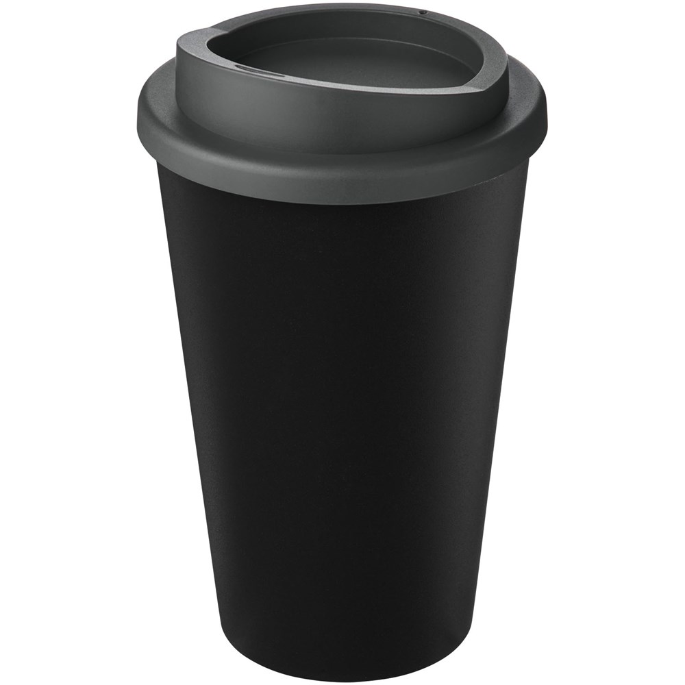 Doppelwandiger Isolierbecher aus recyceltem Kunststoff mit drehbarem Deckel. Der komplette Becher inkl. Deckel besteht zu 75% aus recyceltem Material: ein recycelter Becher mit schwarzer Innenwand und ein Standarddeckel. Aufgrund der Beschaffenheit von recyceltem Kunststoff kann es zu kleinen farblichen Nuancen und Farbabweichungen kommen. Das Fassungsvermögen beträgt 350 ml und der Becher ist vollständig recycelbar. Hergestellt in UK. Verpackt in einem recycelten PE-Kunststoffbeutel. BPA-frei und spülmaschinenfest.
