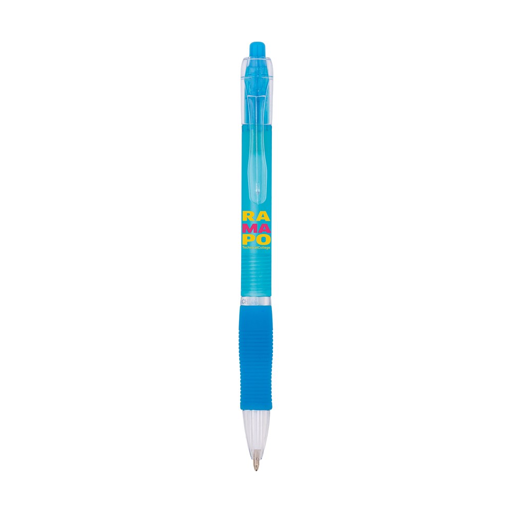 Farbig gefrosteter Schaft mit softer, gummierter Griffzone und transparenten Verzierungen.