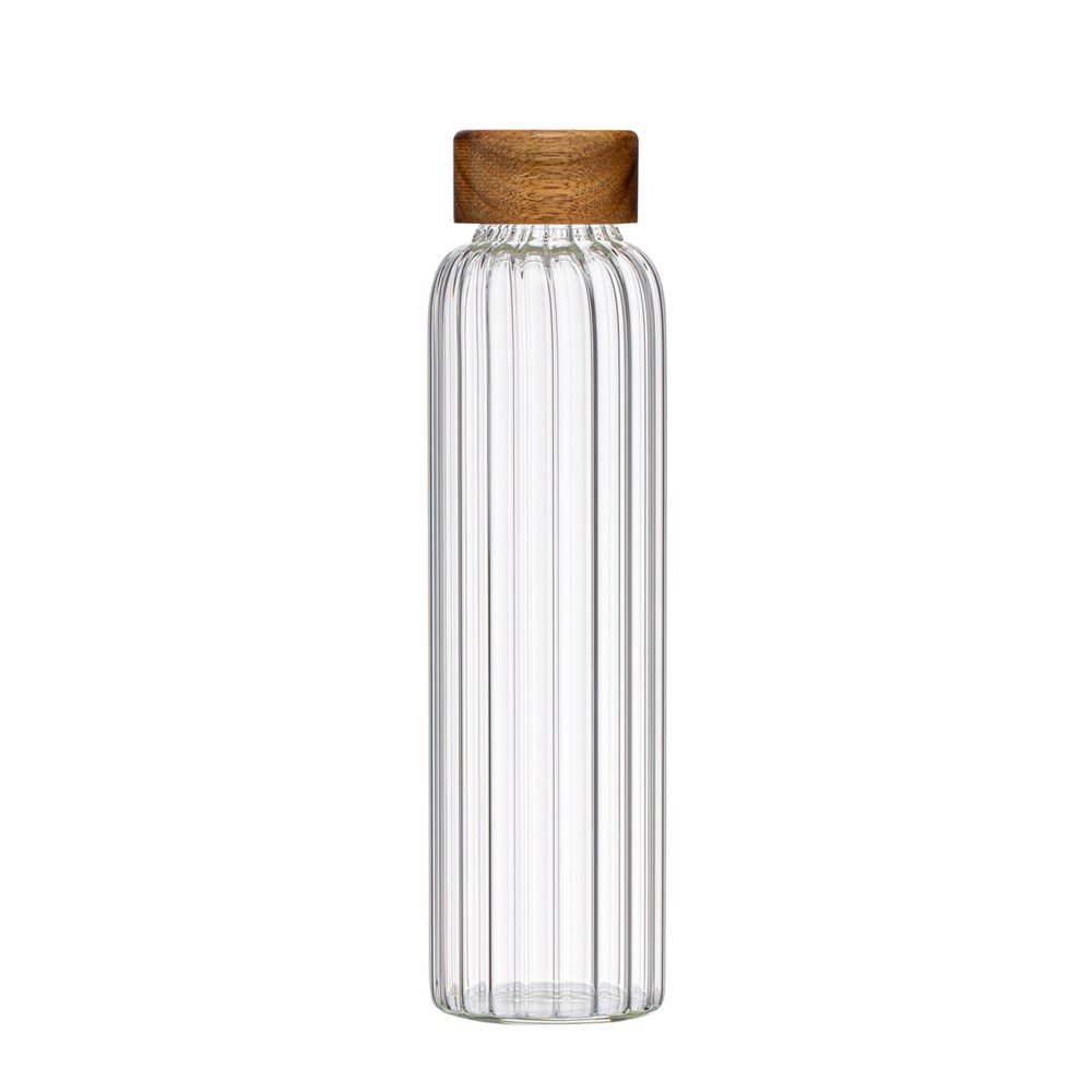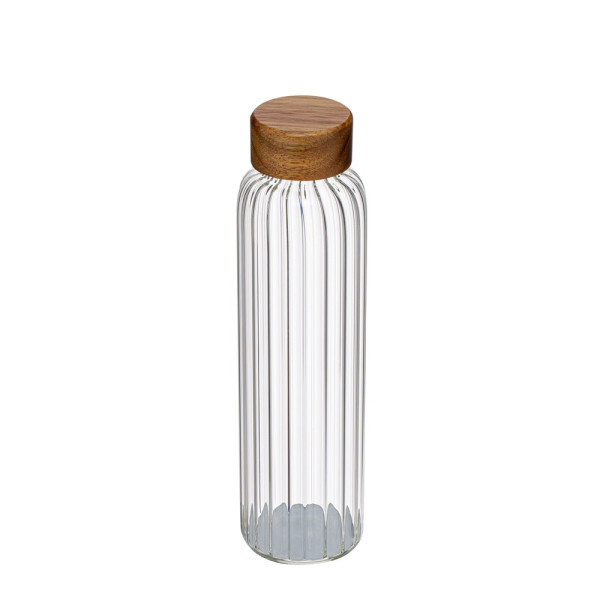 Diese Trinkflasche vereint praktischen Nutzen mit ansprechendem Design. Die auslaufgeschützte 500 ml Flasche ist vielseitig einsetzbar, sei es zu Hause, im Büro oder unterwegs. Das hochwertige Borosilikatglas ist äußerst robust und hitzebeständig. So ist die Flasche auch für heiße Getränke geeignet. Die Riffelungen auf der Innenseite gibt dem Artikel eine neue optische Dimension und ermöglicht die Veredelung der Glasflasche. Der Akaziendeckel sorgt für eine natürliche Note und angenehme Haptik. Tipp: Die Glasflasche kann problemlos in der Spülmaschine gereinigt werden (ohne Deckel).