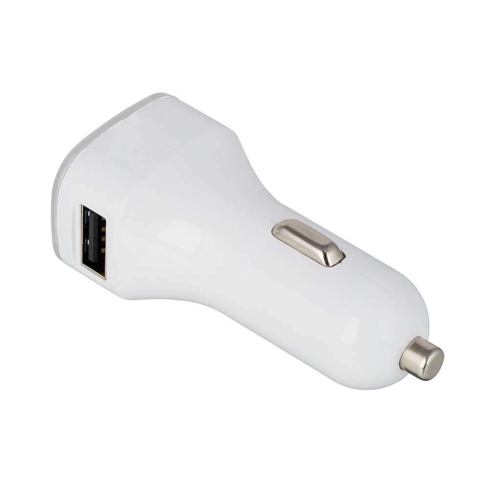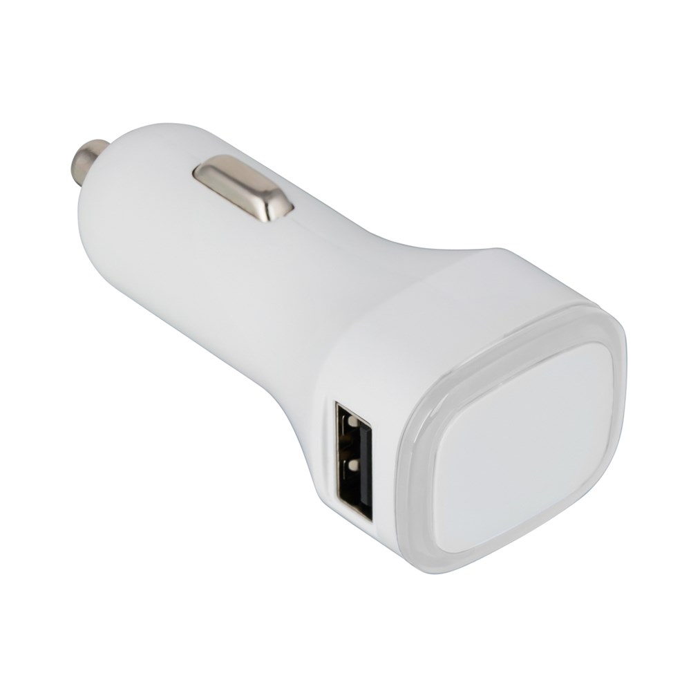 Der intelligente 2-in-1-Autoladeadapter ist für PKW und LKW anwendbar. Mit einer Ausgangsleistung bis zu DC 5V und 3.1A (bei Anschluss auf zwei Geräte verteilt sich die Leistung auf beide). Die intelligente Ladesteuerung weiß genau, wie viel Strom Ihr Gerät zum Laden benötigt. Das integrierte Schutzsystem bewahrt vor Überspannung, Überhitzung und Kurzschluss. Der umlaufende Farbring an der Werbefläche wird per LED hinterleuchtet.