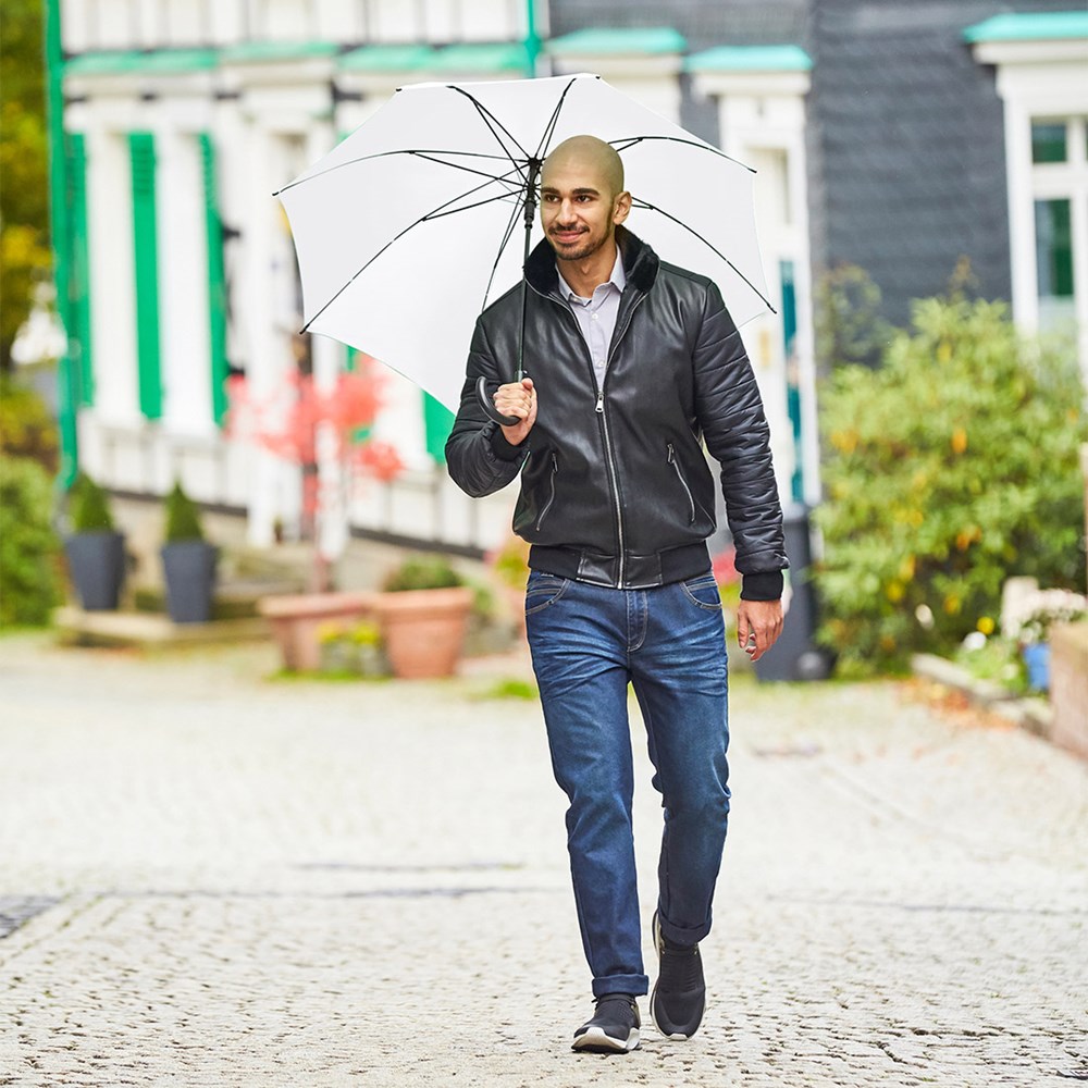 Preislich attraktiver Automatik-Stockschirm mit Windproof-System Komfortable Automatik-Funktion zum schnellen Öffnen, Windproof-System für höhere Gestell-Flexibilität und bessere Windsicherheit, flexible Fiberglasschienen, matt-schwarzer Kunststoff Rundhakengriff, höherer Korrosionsschutz durch schwarze Galvanisierung des Stahlstocks. Auch als Gästeschirm (Art. 2359) erhältlich.
