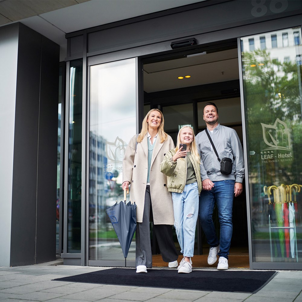 Preislich attraktiver nachhaltiger Gästeschirm mit Bezug aus recycelten Kunststoffen und Echtholzelementen Komfortable Automatik-Funktion zum schnellen Öffnen, Windproof-System für höhere Gestell-Flexibilität und bessere Windsicherheit, flexible Fiberglasschienen, wassersparend gefärbtes Polyester-Pongee waterSAVE® Bezugsmaterial aus recycelten Kunststoffen, mit waterSAVE® Label auf dem Schließband, Echtholzspitzen, Rundhakengriff aus Echtholz, höherer Korrosionsschutz durch schwarze Galvanisierung des Stahlstocks