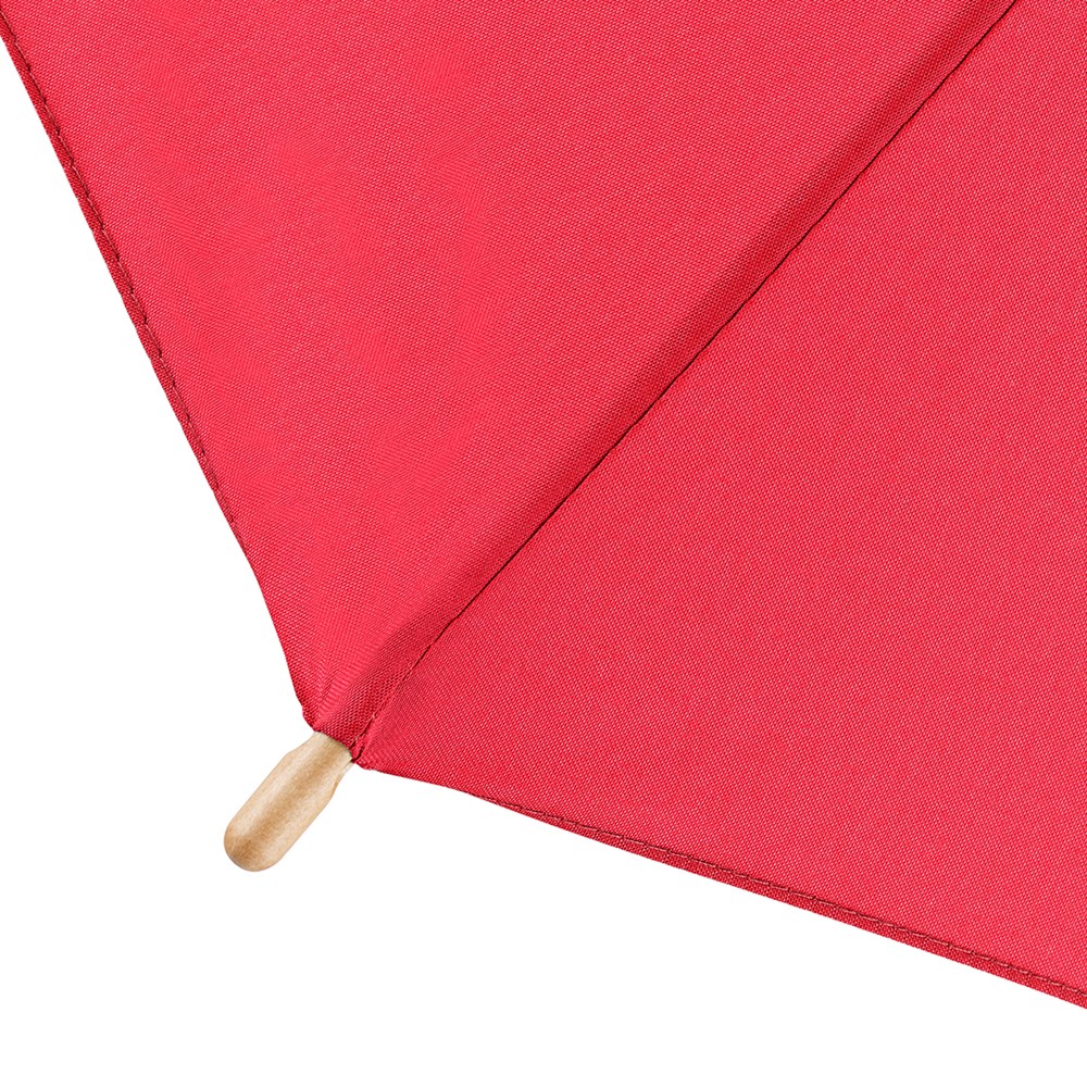 Preislich attraktiver nachhaltiger Gästeschirm mit Bezug aus recycelten Kunststoffen und Echtholzelementen Komfortable Automatik-Funktion zum schnellen Öffnen, Windproof-System für höhere Gestell-Flexibilität und bessere Windsicherheit, flexible Fiberglasschienen, wassersparend gefärbtes Polyester-Pongee waterSAVE® Bezugsmaterial aus recycelten Kunststoffen, mit waterSAVE® Label auf dem Schließband, Echtholzspitzen, Rundhakengriff aus Echtholz, höherer Korrosionsschutz durch schwarze Galvanisierung des Stahlstocks