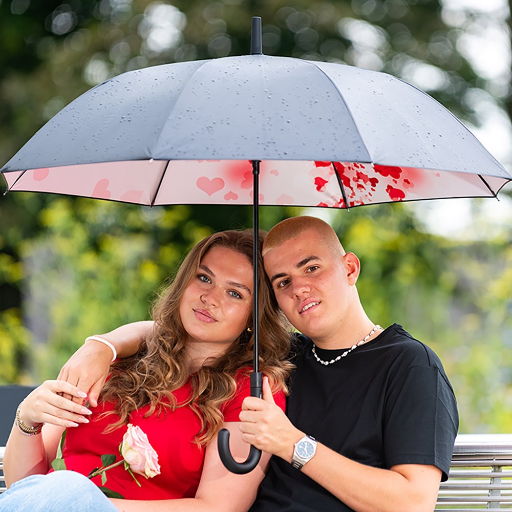 Neutraler Automatik-Stockschirm mit farbigem Motiv-Innendruck Komfortable Automatik-Funktion zum schnellen Öffnen, hochwertiges Windproof-PLUS-System für eine maximale Gestell-Flexibilität bei stärkeren Windböen, flexible Fiberglasschienen, von außen beschichteter Bezug mit Transferdruck innen, Soft-Touch-Rundhakengriff mit integrierter Auslösetaste und Werbeanbringungsmöglichkeit, höherer Korrosionsschutz durch schwarze Galvanisierung des Stahlstocks. Einige Farben auch als Taschenschirm (Art. 5593) erhältlich.