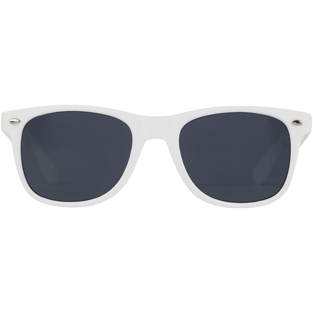 Diese nachhaltige Sonnenbrille im Retro-Design ist der ideale Werbeartikel für Sommerfestivals, Veranstaltungen oder andere sonnige Aktivitäten im Freien. Die Sonnenbrille ist leicht und angenehm zu tragen und aus recyceltem Kunststoff hergestellt, und somit eine nachhaltige Wahl. Sie entspricht der Norm EN ISO 12312-1 und verfügt über UV400-Gläser der Kategorie 3, wodurch sie die perfekte Wahl für den Schutz vor hellem Sonnenlicht ist.