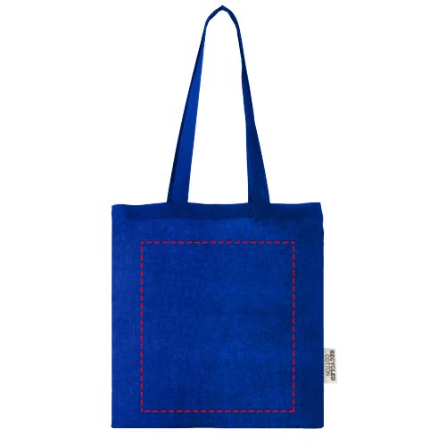 Die Tragetasche Madras aus 100 % GRS-zertifizierter recycelter Baumwolle ist die perfekte Tasche zum Verschenken bei Veranstaltungen, Konferenzen oder als Einkaufstasche für kleine Einkäufe. Die Baumwolldichte von 140 g/m² Baumwolle macht die Tasche robust, langlebig und geeignet, um schwere Gegenstände zu transportieren. Mit einer Tragegriffhöhe von 30cm (Tragegrifflänge 60cm) lässt sich diese Tasche gut tragen. Die für diese Tragetasche verfügbaren Druckverfahren sind ebenfalls GRS-zertifiziert, so dass die gesamte Lieferkette transparent und zertifiziert ist. Hergestellt in Indien. Beständigkeit bis zu 5kg.