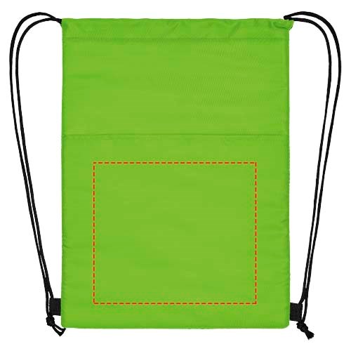Kühltasche mit Kordelzugverschluss in schwarzer Farbe. Ausgestattet mit einer offenen Fronttasche. Passend für 12 Dosen. Beständigkeit bis zu 5 kg.