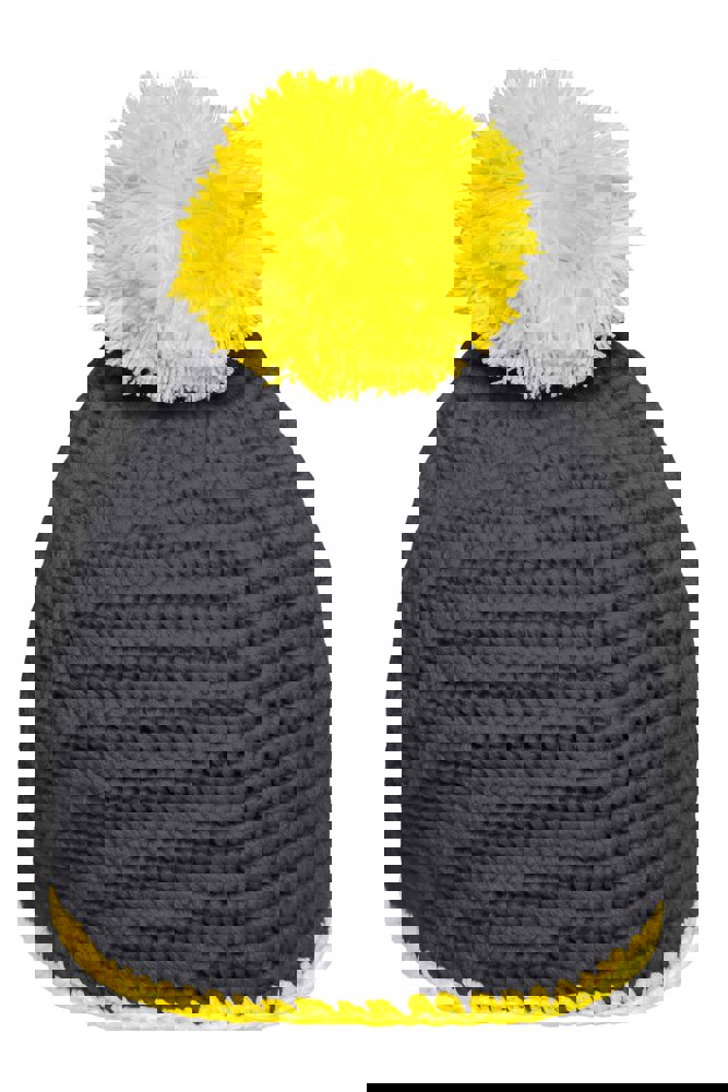 Pompon Hat with Contrast Stripe