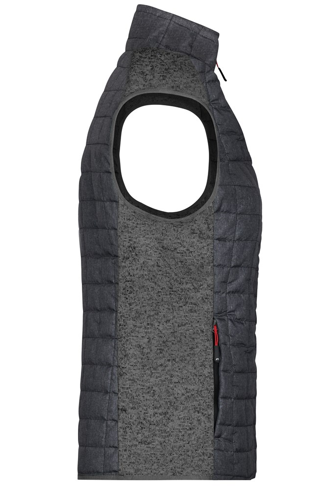 Weiches, wärmendes, pflegeleichtes Material in Melange-Optik Vorder-, Rückenteil und Kragen in gestepptem Karodesign Durchgehend hinterlegter Reißverschluss 2 seitliche Taschen mit Reißverschluss 2 Innentaschen JN739: taillierter Schnitt 1/2 Oberweite: 45 cm 1/2 Saumweite: 46 cm Länge ab Schulter: 63 cm OEKO-TEX® Standard 100 (15.0.70467) Stepp Strickfleece Stehkragen