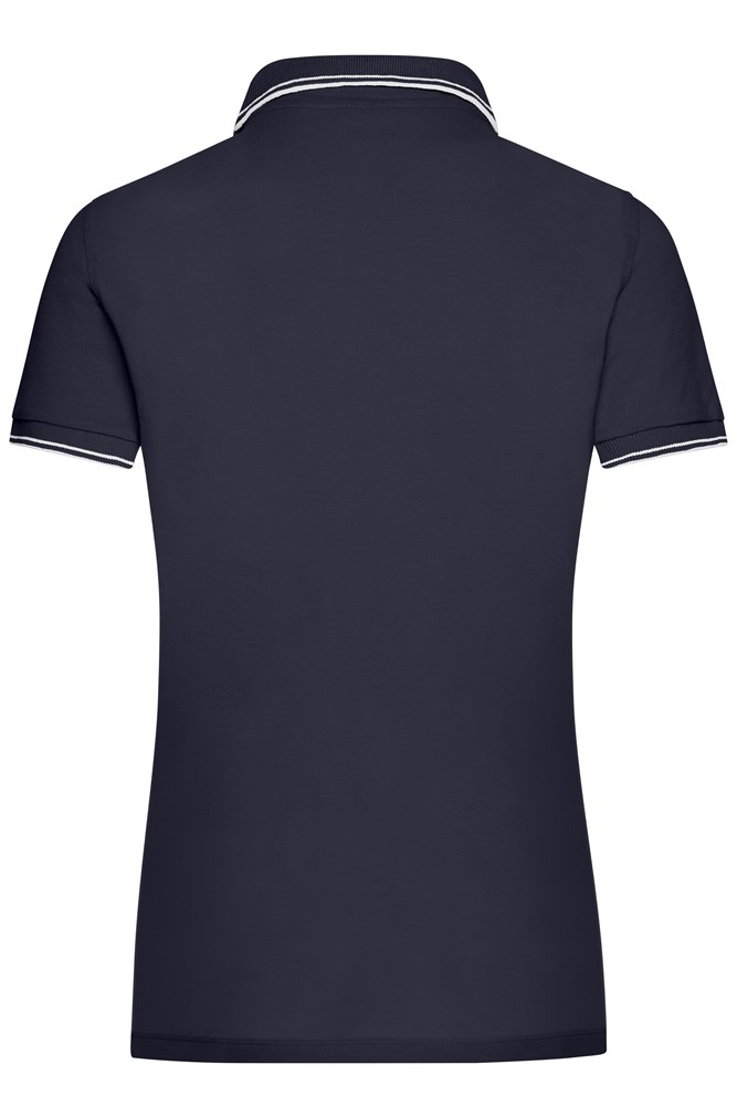 Gekämmte, ringgesponnene Baumwolle Gestrickter Polokragen und Armbündchen mit Kontraststreifen Seitenschlitze kontrastfarbig abgesetzt JN985: 5 Knöpfe, taillierter Schnitt JN986: 3 Knöpfe 1/2 Oberweite: 46 cm 1/2 Taillenweite: 41 cm 1/2 Saumweite: 46 cm Länge ab Schulter: 62 cm Ärmel Länge: 18 cm OEKO-TEX® Standard 100 (15.0.70467) kurz Baumwolle Elastan