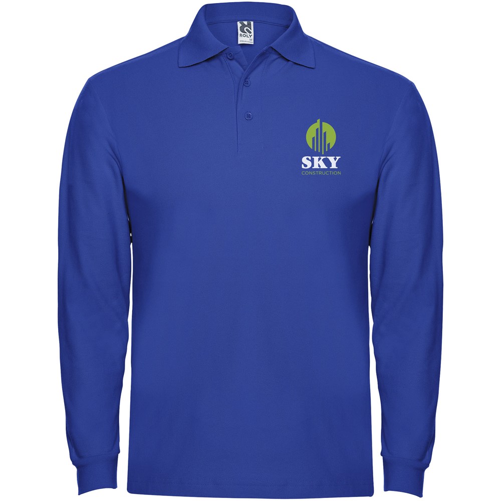 Langärmeliges Poloshirt mit geripptem Kragen und Ärmelbündchen, 3er-Knopfleiste und 1×1-Rippstrickbündchen an den Ärmeln. Verstärkte und verdeckte Nähte am Kragen. Optionale Tasche. Herausnehmbares Etikett. Das Modell ist 190 cm groß und trägt Größe L.