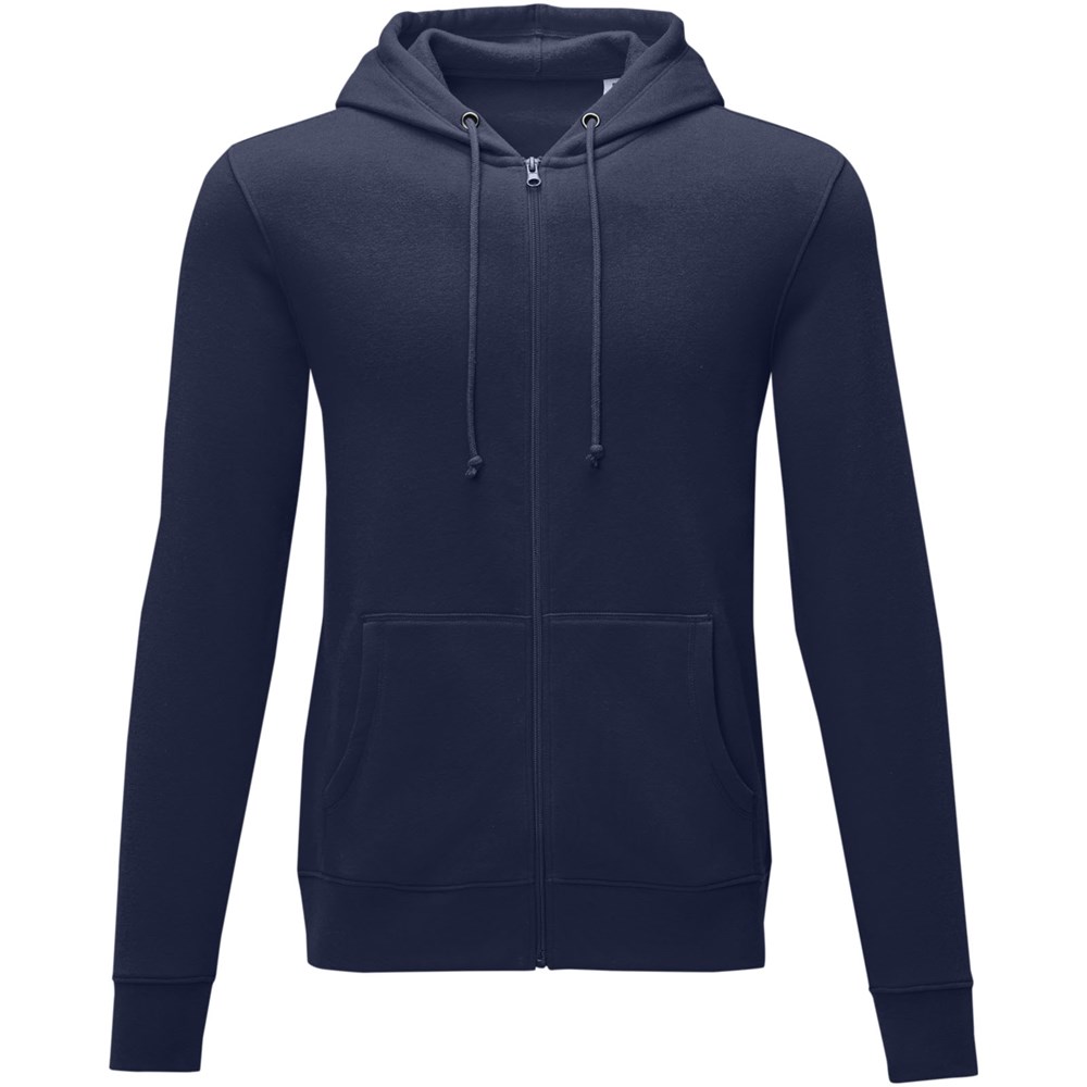 Der Theron Herren-Kapuzenpullover mit durchgehendem Reißverschluss - hier treffen Stil und Komfort in perfekter Harmonie aufeinander. Dieser Kapuzenpullover ist eine wahre Verkörperung des klassischen Designs. Außerdem können Sie den Kapuzenpulli innen mit einem individuellen Branding versehen oder individuell gestalten. Eine Kängurutasche kombiniert Komfort mit moderner Ästhetik. Die flachgestrickten Rippbündchen an Saum und Ärmeln garantieren einen sicheren Sitz, während die gebürstete Innenseite für maximale Weichheit sorgt. Das 240 g/m² schwere Mischgewebe aus Baumwolle und Polyester verspricht Wärme und Haltbarkeit. Werten Sie Ihre Garderobe mit dem Theron Kapuzenpullover mit durchgehendem Reißverschluss auf.