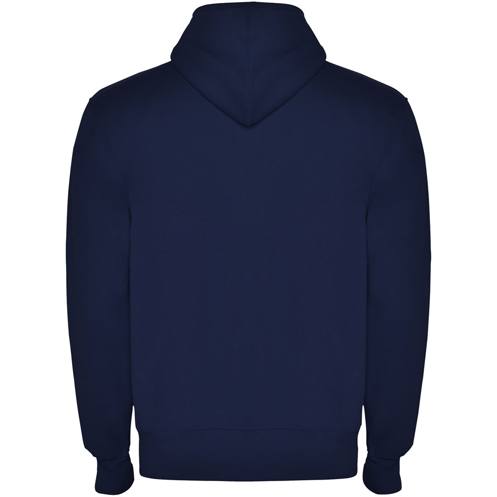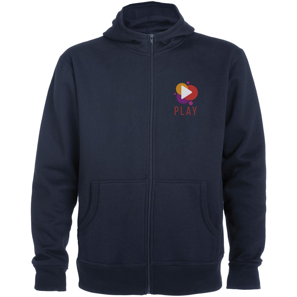 Sweatjacke mit Kapuze, hohem Halsausschnitt und durchgehendem Reißverschluss. Gerippte Details an Kapuze und Taschenpaspeln. Tasche im Känguru-Stil. 2×2 Rippenstrick an Ärmeln und Taille. Herausnehmbares Etikett. Das Modell ist 184 cm groß und trägt Größe L.