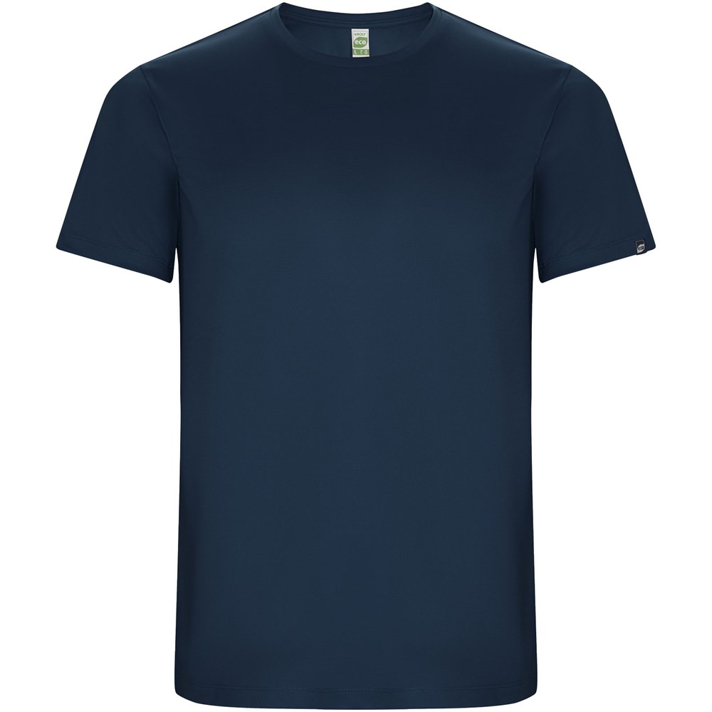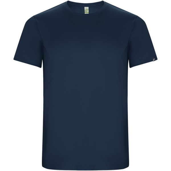 Funktions-T-Shirt aus recyceltem Polyester CONTROL DRY. Rundhalsausschnitt mit farblich abgesetzten Nähten. ECO-Logo-Etikett am Ärmel. Verpackung aus Recyclingmaterial. Herausnehmbares ECO-Etikett. Verpackung aus Recyclingmaterial. Technisches Gewebe. Das Modell ist 115 cm groß und trägt Größe 5/6.