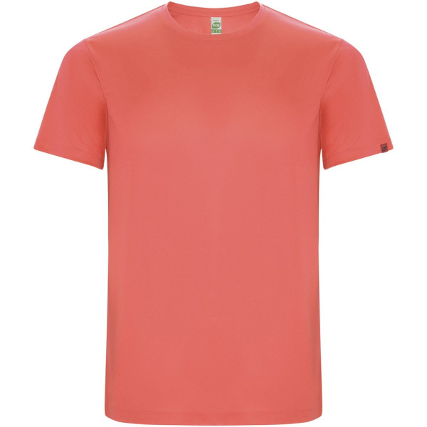 Funktions-T-Shirt aus recyceltem Polyester CONTROL DRY. Rundhalsausschnitt mit farblich abgesetzten Nähten. ECO-Logo-Etikett am Ärmel. Verpackung aus Recyclingmaterial. Herausnehmbares ECO-Etikett. Verpackung aus Recyclingmaterial. Technisches Gewebe. Das Modell ist 115 cm groß und trägt Größe 5/6.