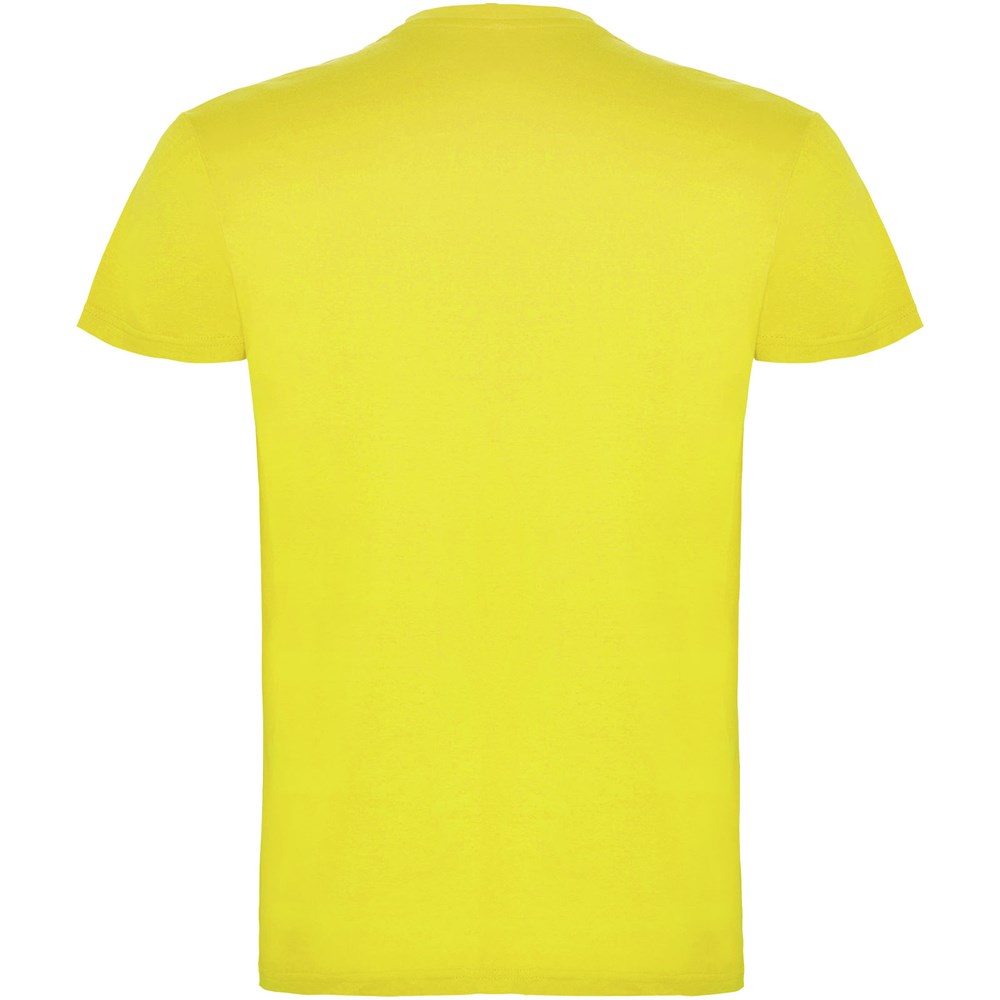 Kurzärmeliges T-Shirt mit doppellagigem Rundhalsausschnitt aus Elasthan, hergestellt aus mit Seitennähten. Verstärkte und verdeckte Nähte am Kragen. Herausnehmbares Etikett. Das Modell ist 120 cm groß und trägt Größe 5/6.