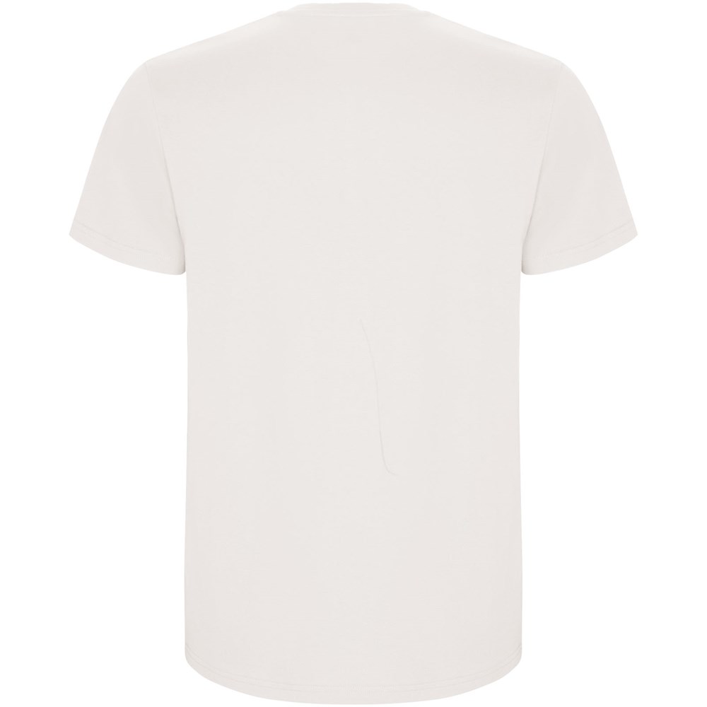 Schlauchförmiges kurzärmeliges T-Shirt. Rundhalsausschnitt mit Elasthan. Seitennähte. Herausnehmbares Etikett.