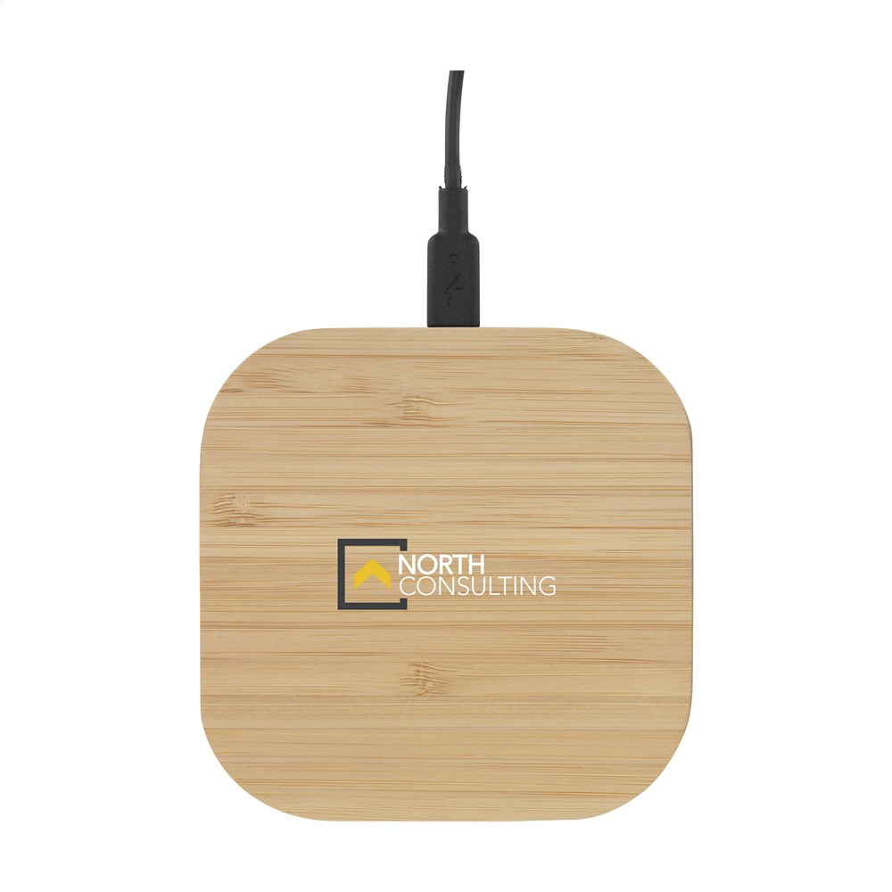 Praktisches 15-W-Ladegerät zum kabellosen Aufladen von Mobiltelefonen. Hergestellt aus hochwertigem, FSC 100% zertifiziertem Bambus. Kompatibel mit allen mobilen Geräten, die das drahtlose QI-Laden unterstützen (Androids und iPhones der neuesten Generation). Eingang: 9V/2A. Drahtloser Ausgang: 15W. Mit Anzeigelampe. Inklusive PVC-freiem USB-C/USB-C-Ladekabel und Gebrauchsanweisung. Verpackt pro Stück.