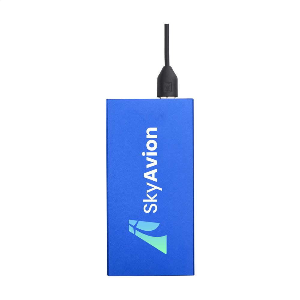 Leistungsstarke Powerbank mit integriertem Lithium-Polymer-Akku (5000 mAh). Das Gehäuse ist aus 100% GRS-zertifiziertem, recyceltem Aluminium gefertigt. Dieses Kraftpaket passt mühelos in Ihre Hosentasche, sodass Sie es bequem überallhin mitnehmen können. Eingang 5 V/2,4 A (Typ-C) Ausgang: 5V/2,4A Dual-USB. Mit Kontrollleuchten. Inklusive USB-C-Ladekabel und Gebrauchsanweisung. Gesamtes recyceltes Material: 36%. Durch die Verwendung von recyceltem Aluminium werden bei der Herstellung dieses Produkts weniger neue Rohstoffe verwendet. Das bedeutet weniger Energieverbrauch und weniger Wasserverbrauch. Pro Stück in einer Verpackung.