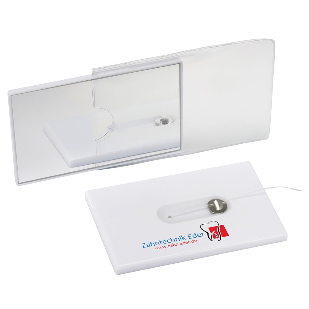 mit 10 m gewachster Qualitätszahnseide, Spiegel auf der Rückseite, mit beigelegter Hülle